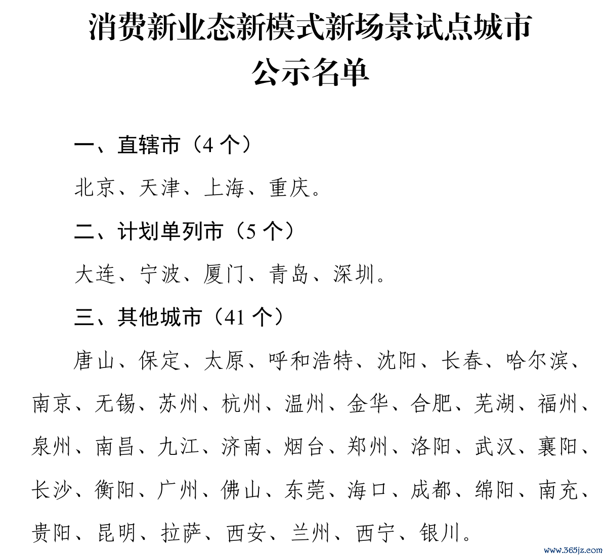 消费新业态新模式新场景试点城市公示名单公布消费新业态新模式新场景试点城市公示名单公布